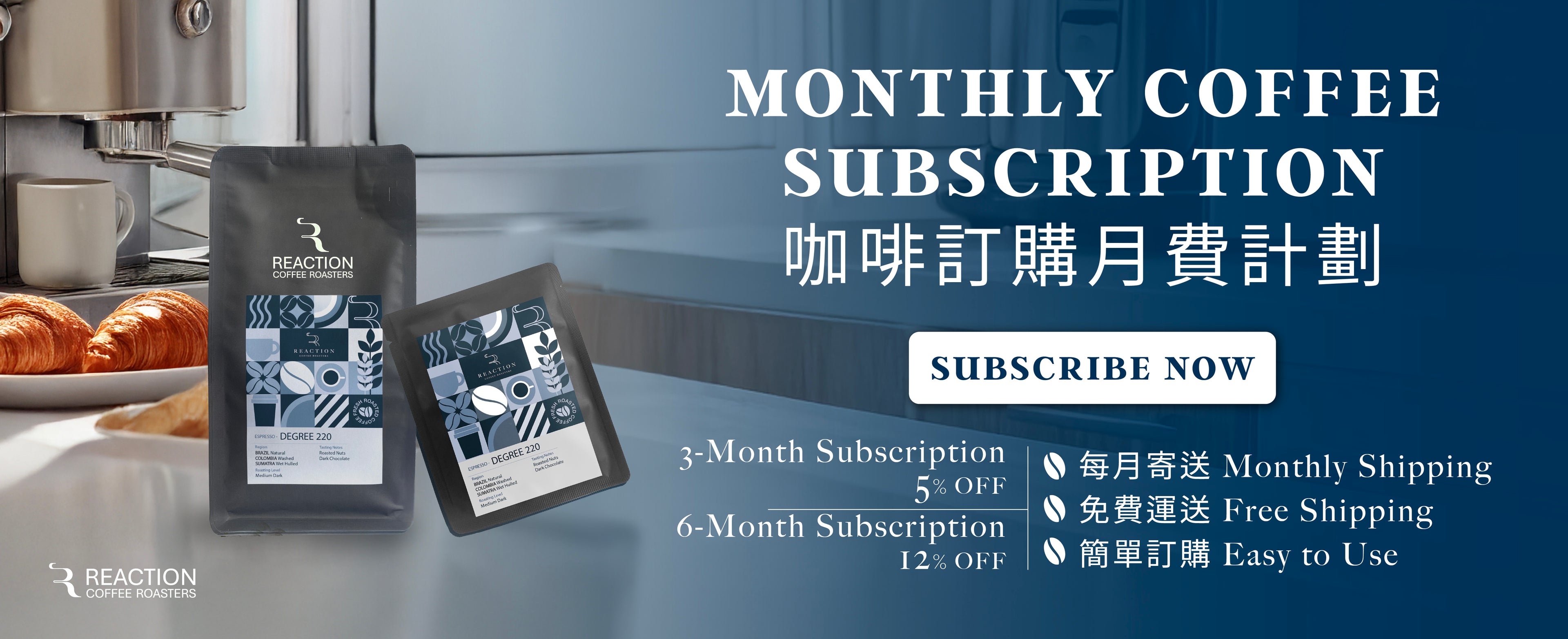 Choosing from our curated selection of single-origin and specialty coffees, or exploring our innovative house blends, coffee lovers can alwavs find a new reaction at REACTION Coffee Roasters.